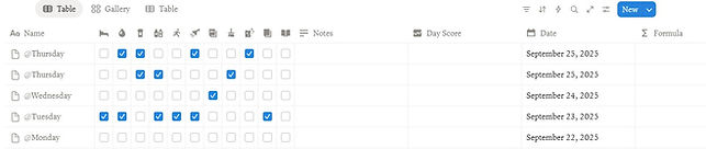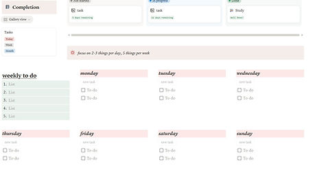 During prototyping, I used Pinterest boards and leading Notion templates to inform a more successful layout and style cues. I created three examples and relied on tutorials to make the most out of Notion’s potential- and I learned the best practices for default property settings and how to ease onboarding for my audience. One prototype's formula-driven habit tracker malfunctioned, and my limited knowledge of database relations and formulas led to further refining from existing templates’ data.